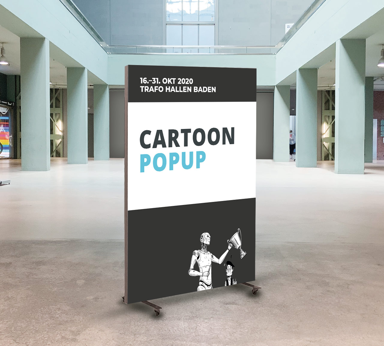 Mit der Ausstellung «Cartoon Popup» anlässlich #ZeitSprungIndustrie präsentierten wir die Karikaturen von eingeladenen deutschsprachigen Zeichnerinnen zum Thema Industrie.