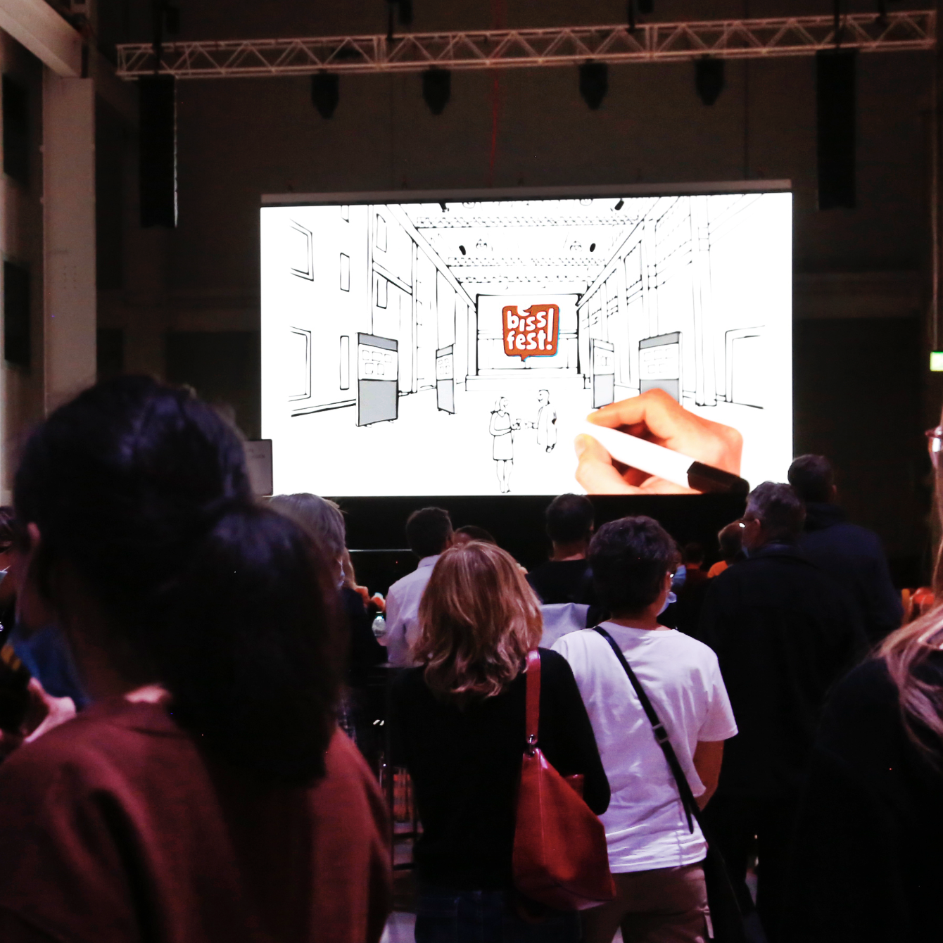 Lass Dich bis um 20 Uhr und in der Pause von visuellen Momenten inspirieren und verfolge das Live-Zeichnen der anwesenden Cartoonist:innen auf dem Big Screen.